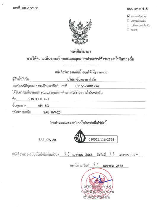 น้ำมันเครื่องเกรดรวมชนิดสังเคราะห์ 100 %(Fully Synthetic)
