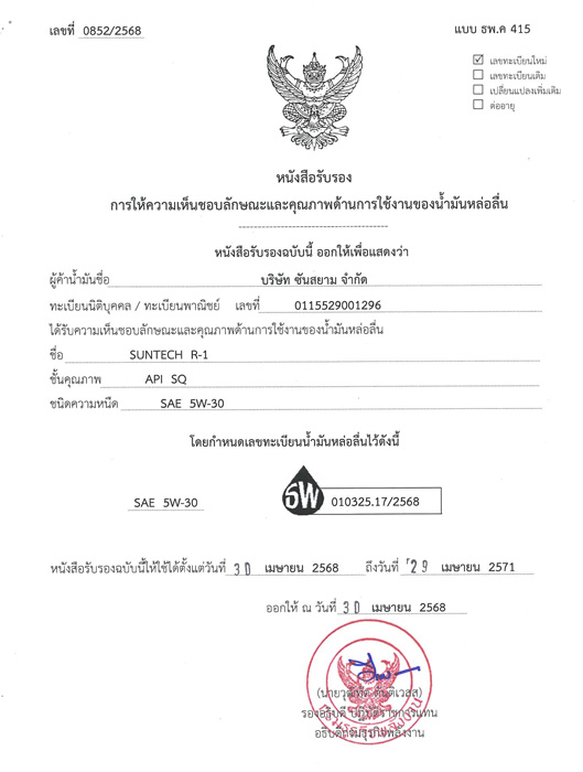 น้ำมันเครื่องเกรดรวมชนิดสังเคราะห์ 100 %(Fully Synthetic)
