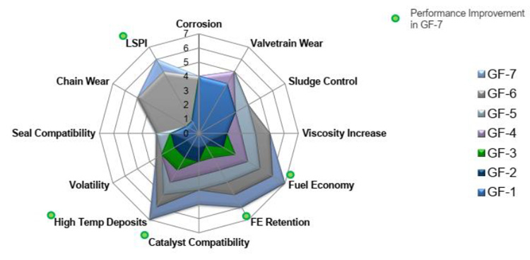 API SQ Introduced in March 2025, designed to provide protection against both fresh and aged oil low-speed pre-ignition (LSPI), improved timing chain wear protection, improved high temperature deposit protection for pistons and turbochargers, sludge and varnish control. API SQ with Resource Conserving matches ILSAC GF-7A by combining API SQ performance with improved fuel economy, enhanced emission control system protection, enhanced low temperature pumpability and protection of engines operating on ethanol-containing fuels up to E85