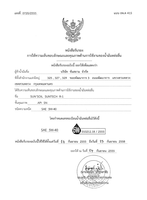 SUN’SOIL SUNTECH R-1 DIESEL is a fully synthetic engine oil produced from synthetic base stocks, Polyalpha Olefin (PAO) and special additive packages specifically designed to provide superior lubrication, protection, thermal stability, and excellent fuel economy.