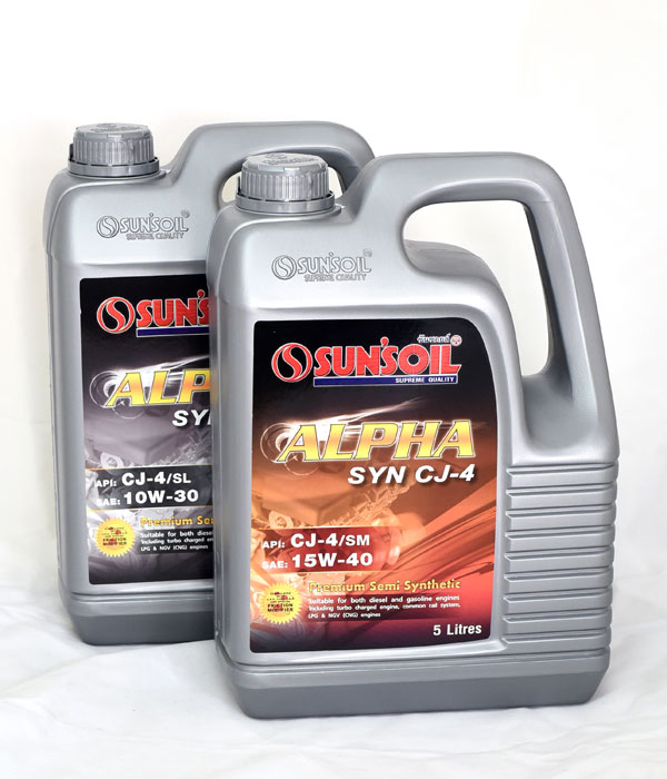 SUN'SOIL ALPHA SYN CJ-4 is premium semi-synthetic engine oil produced from high quality base stocks with special additive packages specifically designed to provide superior lubrication, protection, thermal stability, and excellent fuel economy.